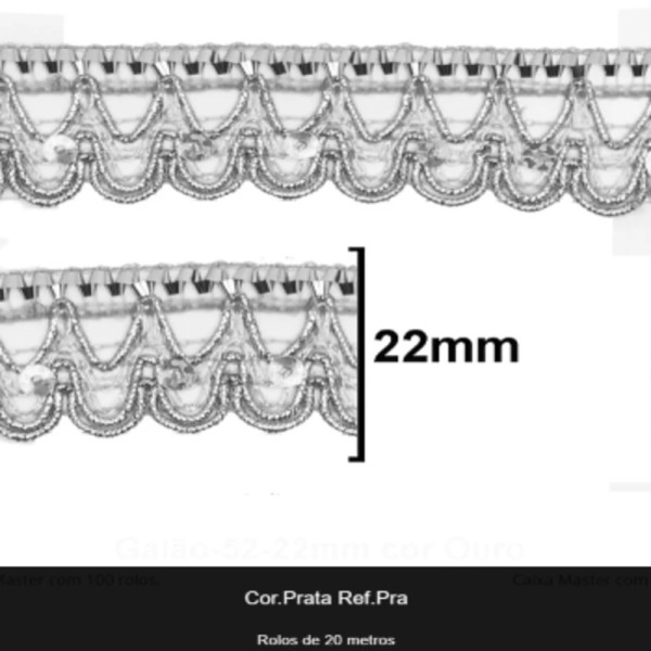 Produto: GALAO 052 PRATA LARG:2,2CM 20METROS