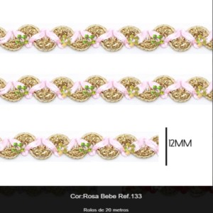 GALAO 92 132 ROSA BB/OURO LARG:10MM 20M