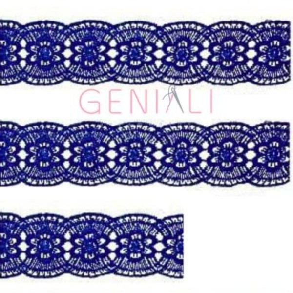 Renda Guipir Azul Royal com acabamento impecável, ideal para aplicações em roupas finas, artesanato e decoração. Perfeita para quem busca sofisticação.