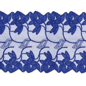 Renda Guipir Azul Royal com acabamento impecável, ideal para aplicações em roupas finas, artesanato e decoração. Perfeita para quem busca sofisticação.
