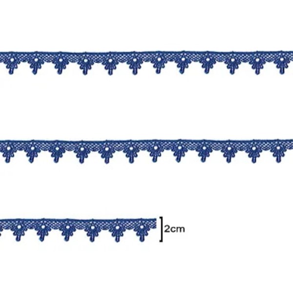 Renda Guipir Azul Royal com acabamento impecável, ideal para aplicações em roupas finas, artesanato e decoração. Perfeita para quem busca sofisticação.