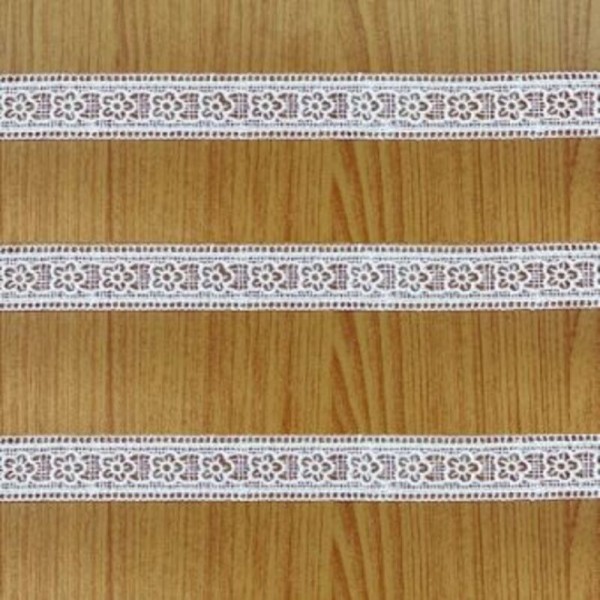 Guipir entremeio - desenho floral Largura: 2,5cm Comprimento: 13,70 metros composição: 100% poliester