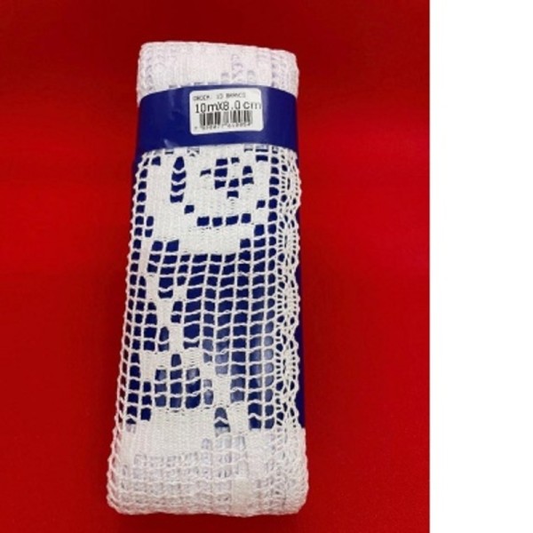 Renda de Algodão Ipiranga, na cor branca, com diversos modelos e 10 metros de comprimento. Ideal para acabamentos artesanais em toalhas, panos de prato, roupas e demais trabalhos manuais. Composição 100% algodão. Fabricada pela Rendas Ipiranga. Não encolhe com a lavagem.