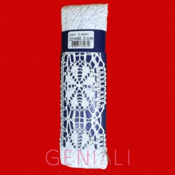 Renda de Algodão Ipiranga, na cor branca, com diversos modelos e 10 metros de comprimento. Ideal para acabamentos artesanais em toalhas, panos de prato, roupas e demais trabalhos manuais. Composição 100% algodão. Fabricada pela Rendas Ipiranga. Não encolhe com a lavagem.